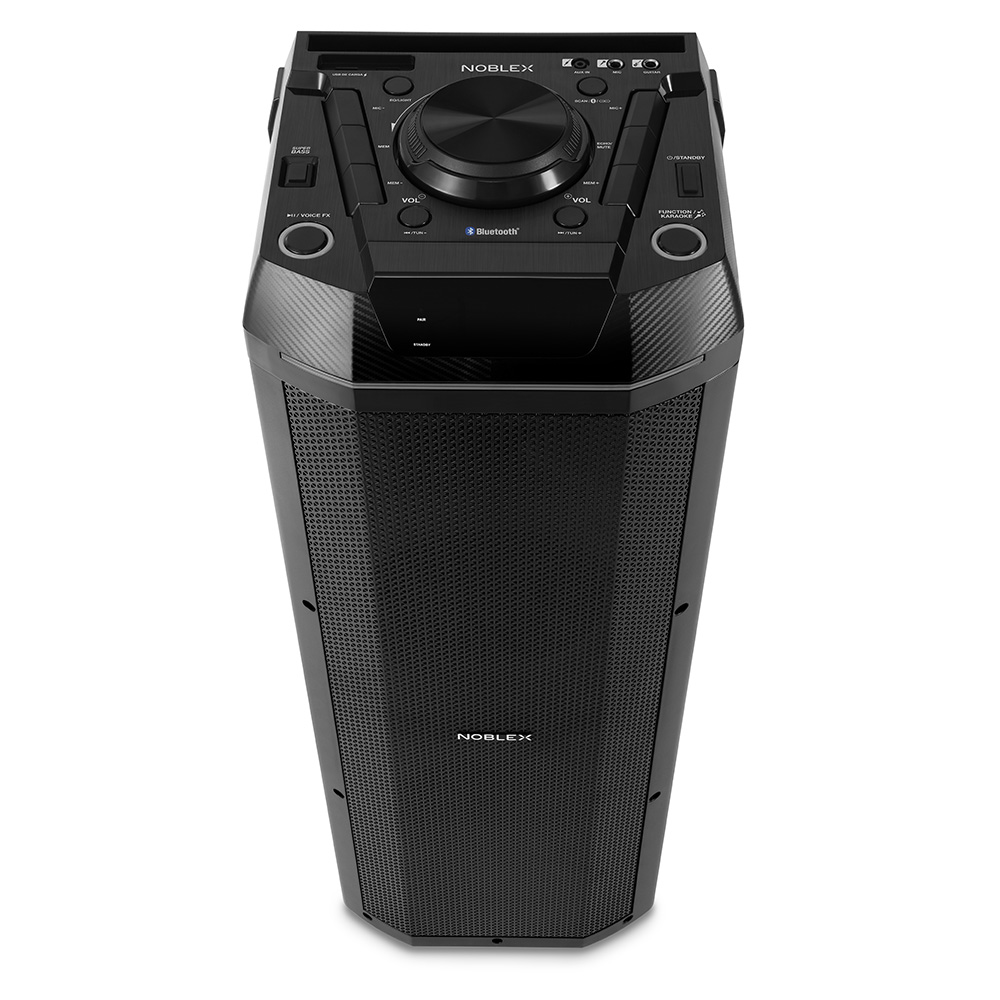 Su diseño integra un Doble Woofer de 6.5" + Driver para una reproducción de sonido completa y potente, y todo se controla fácilmente desde su Display LCD y el control remoto incluido. Además, cuenta con una superficie con soporte para Tablet o Smartphone y ruedas para su fácil transporte.