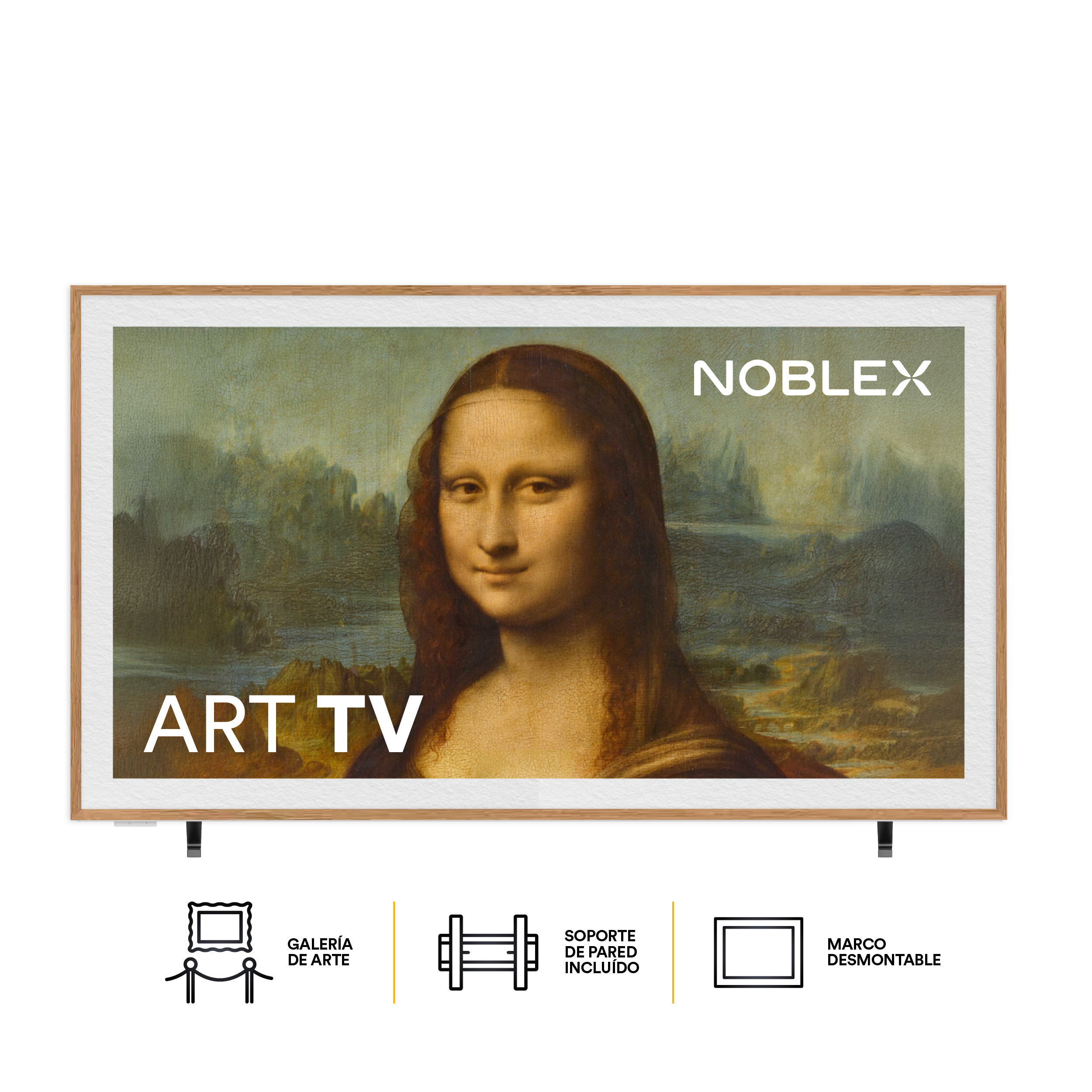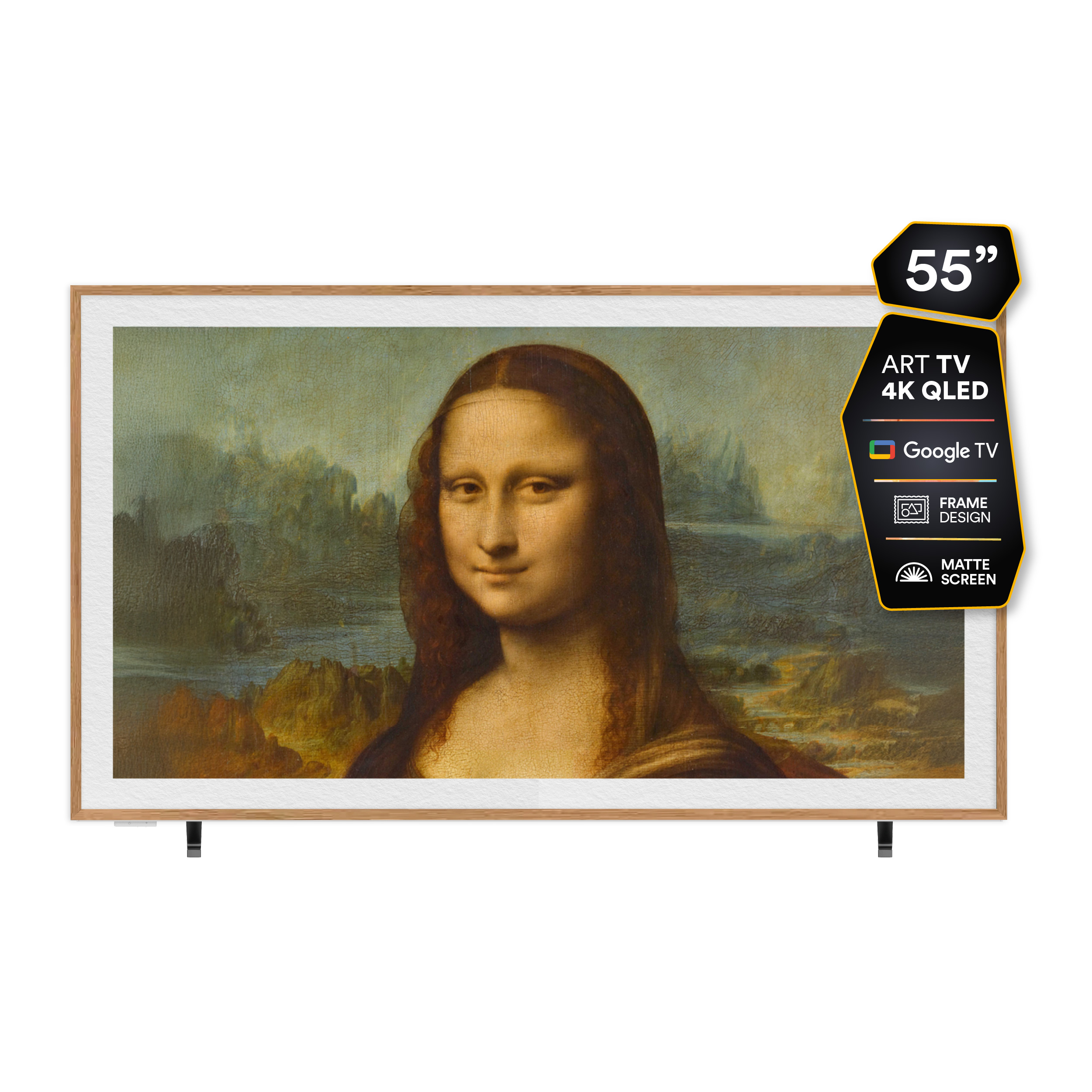El diseño de su marco moderno incluido se integra perfectamente con tu espacio, destacándose por su delgadez, tonificación y un sofisticado acabado woodframe que ofrece un aspecto elegante desde todos los ángulos.
