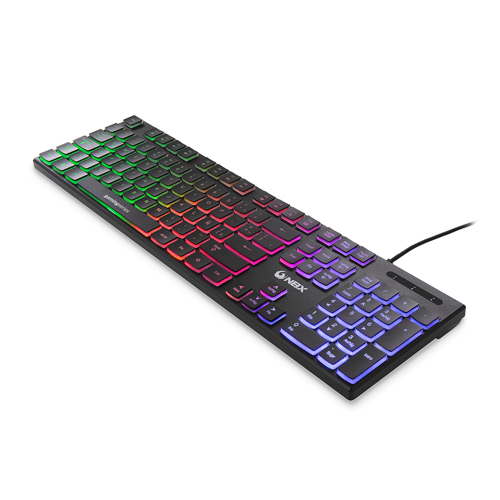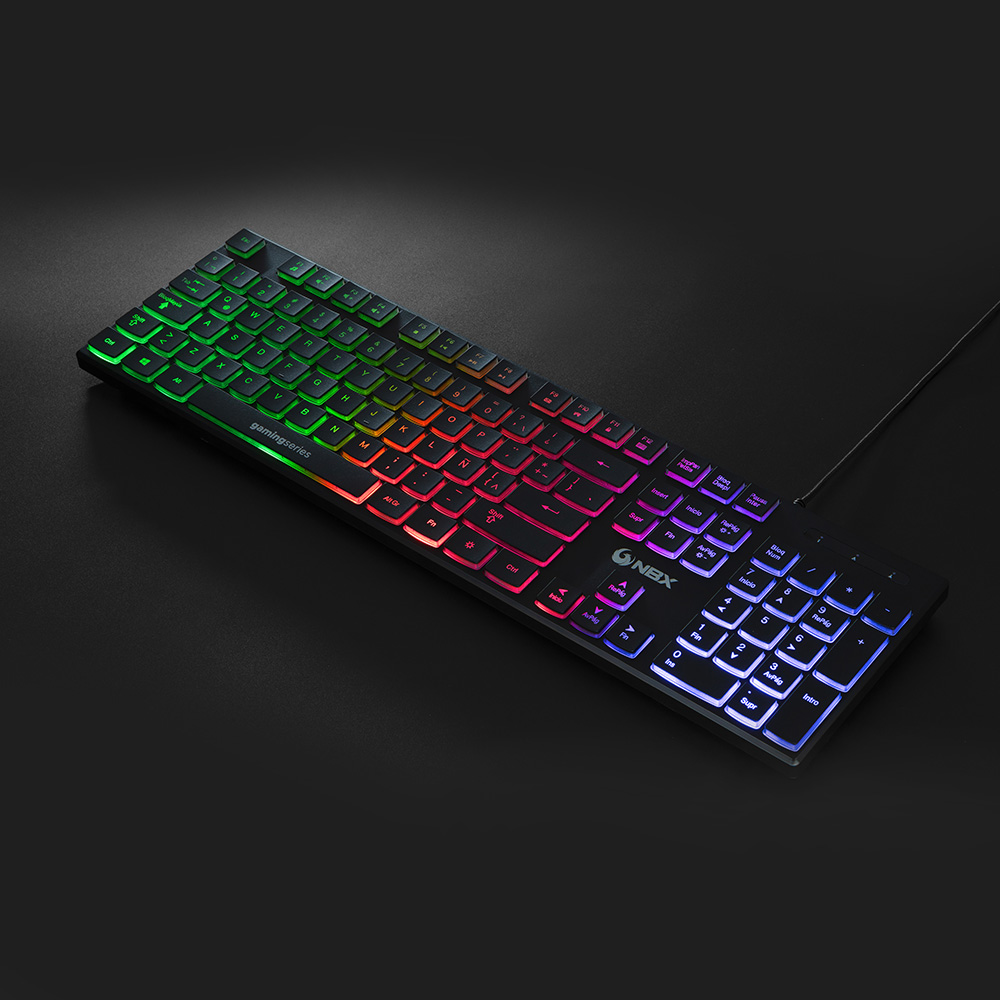 El teclado NBX-KB1000M es un teclado de membrana con diseño slim, que incluye luces RGB para que puedas darle un ambiente mas gamer a tu espacio. Además, contiene el teclado númerico para que sea mas fácil acceder a las teclas.