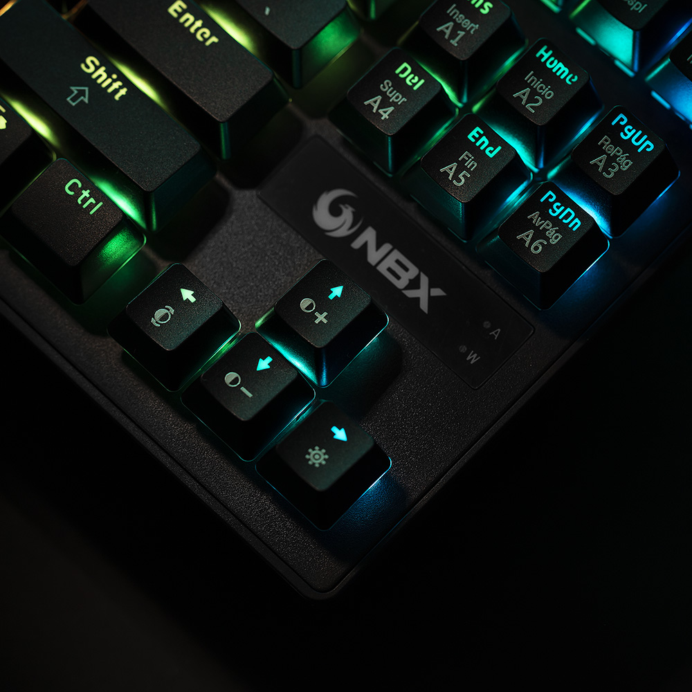 El teclado NBX-KB3000CH es un teclado mecánico con más de 15 combinaciones de colores programables desde software. Incluye variedad de opciones de iluminación, efectos y niveles de brillos según el estilo que vos prefieras.