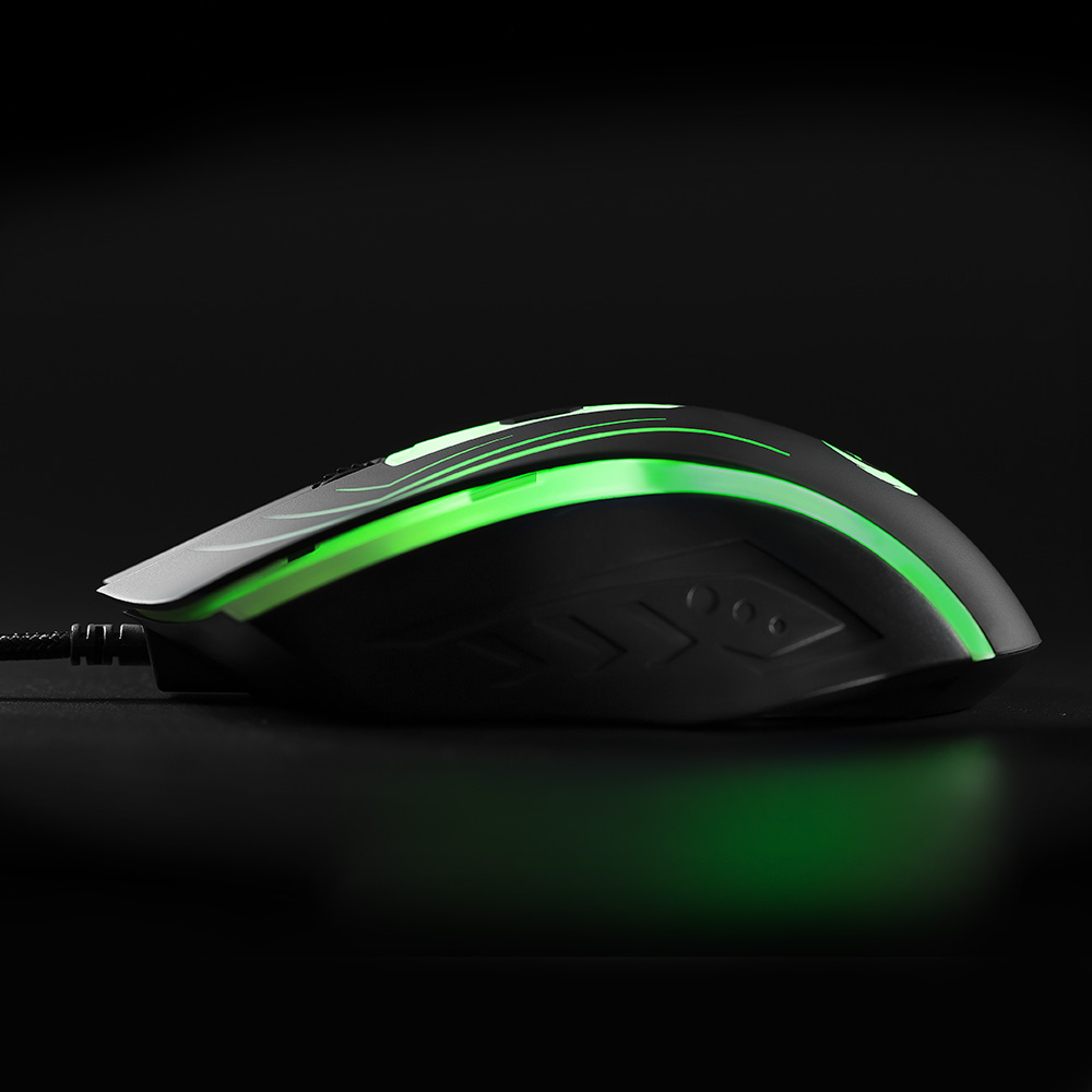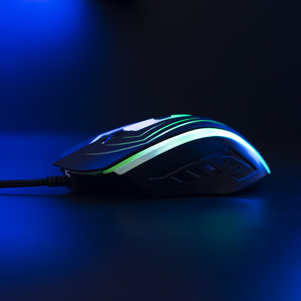 El mouse tiene una resolución de 8000 DPI, para que juegues las partidas más rápidas. Además, tiene 4 botones y viene con el mousepad de presición con bordes de doble costura.