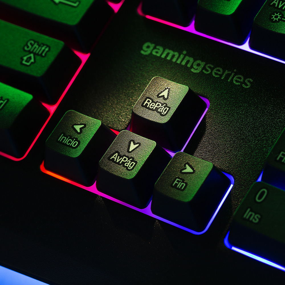 El teclado de membrana incluye iluminación rainbow para que puedas darle un ambiente mas gamer a tu espacio. Además, contiene teclado númerico para que sea mas fácil acceder a las teclas, y un apoya muñecas, que aporta mayor comodidad y ergonomía. Conectá el teclado a tu dispositivo a traves del cable USB y comenzá a disfrutar de tu experiencia gamer con respuestas rápidas y precisas.